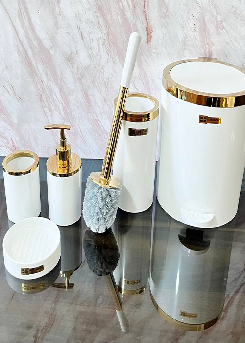 2- بهتر است ست بهداشتی ای که تهیه می کنید شامل تمام اجزای ضروری مانند جا مایع، جا صابون، جای مسواک و سطل زباله و برس باشد ، تا برای نظافت سرویس بهداشتی و چیدمان وسایل ضروری نیازی به وسایل دیگر و صرف هزینه جدید برای تهیه آن نداشته باشید .